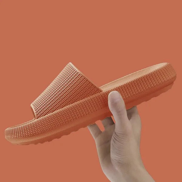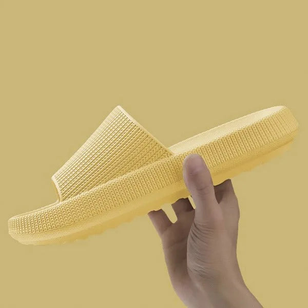Our cloud slippers are made from skin-friendly EVA material. They have excellent waterproof performance in various places such as the bathroom, pool, beach, spa, living room, or bedroom. If water enters the sandals, there are drainage holes on the sides to let it out. Additionally, the cloud slippers feature non-slip soles. This makes it safer to step on any wet and slippery surface.
